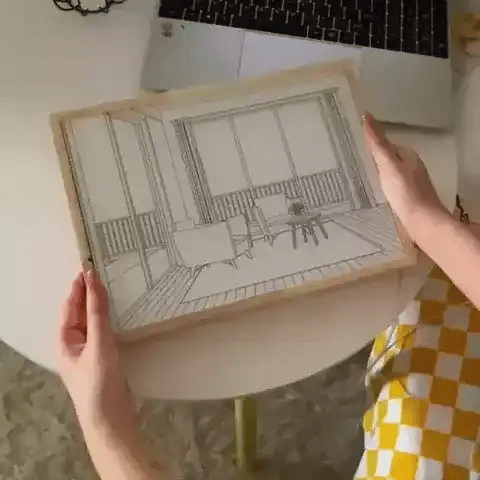 Prepare to be astounded by the artistry concealed within this unassuming painting frame. Delicately etched single-lined art adorns the surface, hinting at the scenes that lie beneath. Delight in the joy of art that remains hidden until you decide to illuminate it, creating an air of intrigue and beauty in your surroundings.